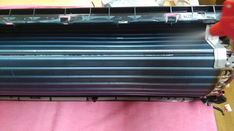 アルミフィンに突き刺さっておりますので、脱着の完全分解でないと安全に取り外して洗浄不能です。