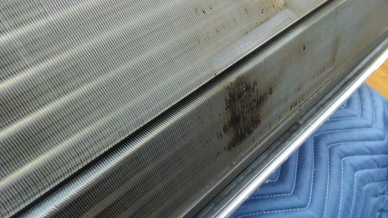 背抜きというアルミフィンだけにする工法がございますが、アルミフィンの洗浄においてもバケツに換算すると20杯分~50杯分高圧洗浄・流水で洗浄すすいでおりますので、丁寧さ仕上りが格段に違います。