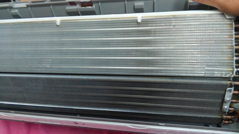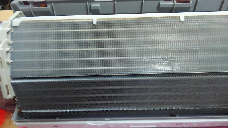 以下の画像の様に、ここまでキレイにすれば2年位は大丈夫です。新品のエアコンは、2~3年大丈夫なように。
