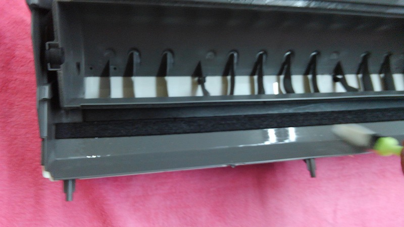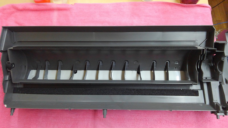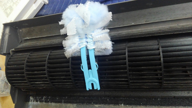 カバーとフィルターを外すと、掃除機の先端ノズルブラシを発見。こちらは取り付けの際に渡しました。