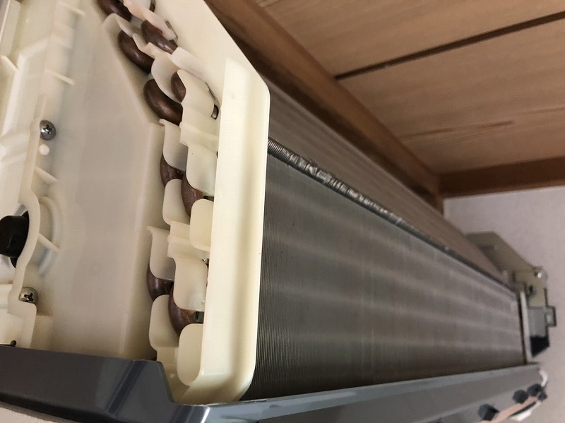 以下の様に壁側のアルミフィンがないタイプの事です。