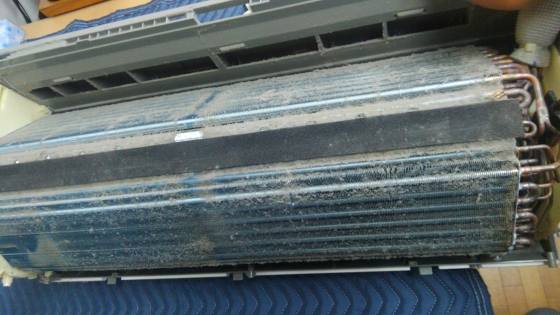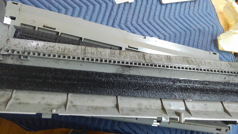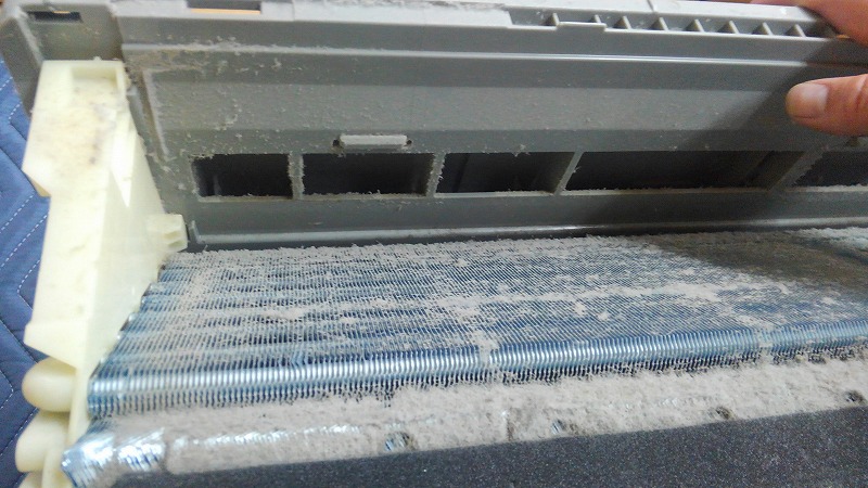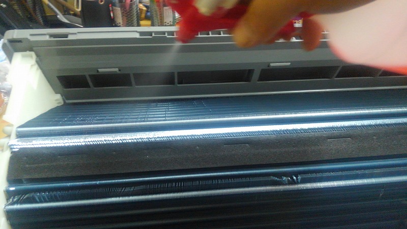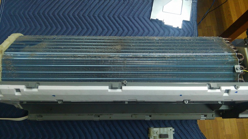 うるさら機種はアルミフィンが分厚すぎるので、強烈な高圧洗浄をかましてあげないと打ち抜けません。