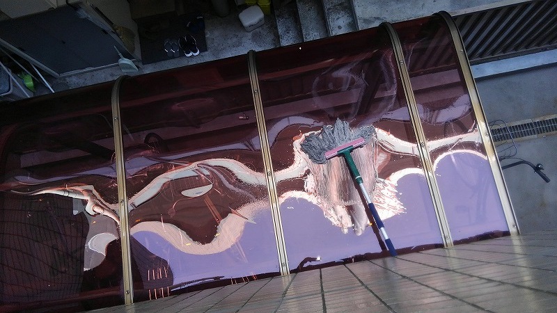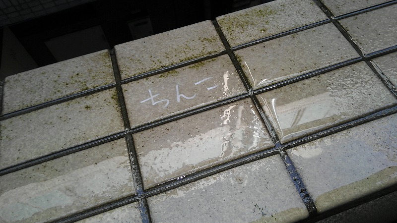落書きは辞めましょう。高圧洗浄でビクともしないので洗剤で除去。