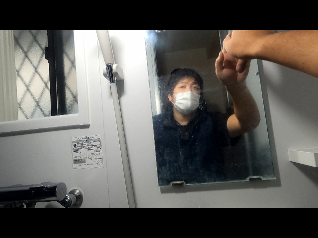 今回は空室清掃に入る前で実演したので、鏡の3分の1の上部のみ磨きました。