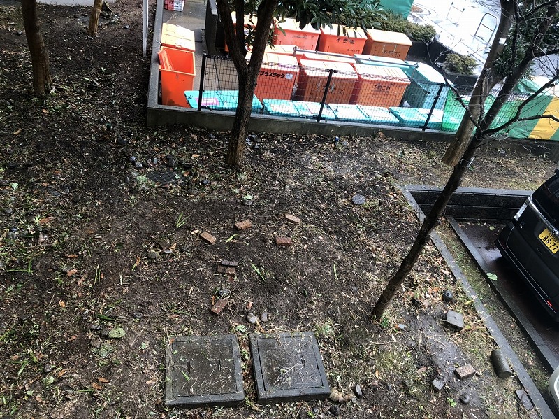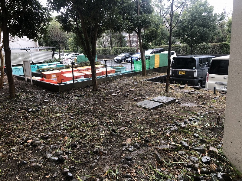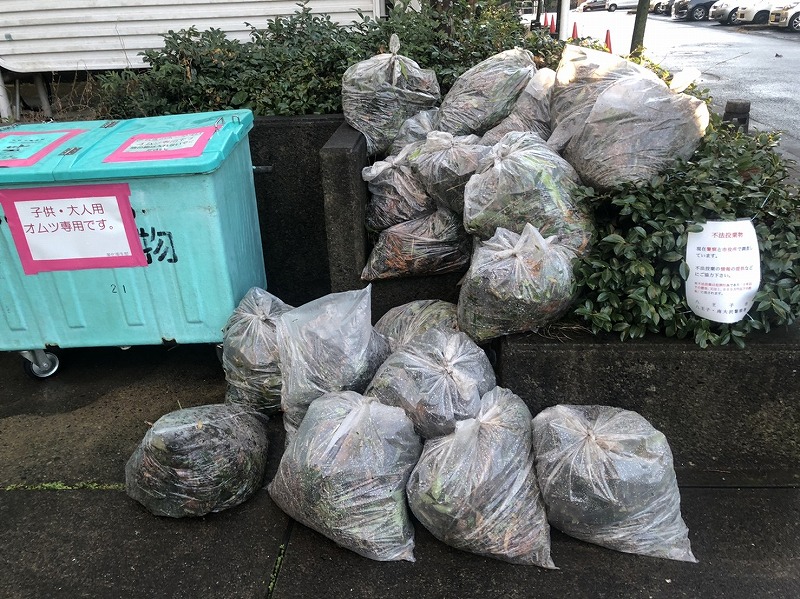 団地内のゴミ置き場にて袋詰め・処分させていただきました。