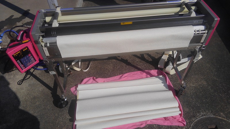 また、これ位の壁紙量ならば営業所で糊付けてカンガルー袋に入れていくのですが、在宅のため採寸できず乗附機持ち込みです。
