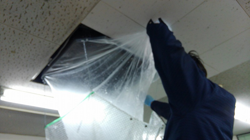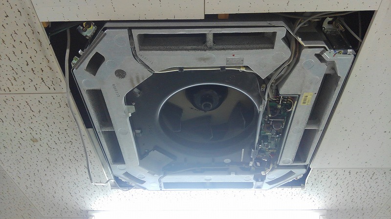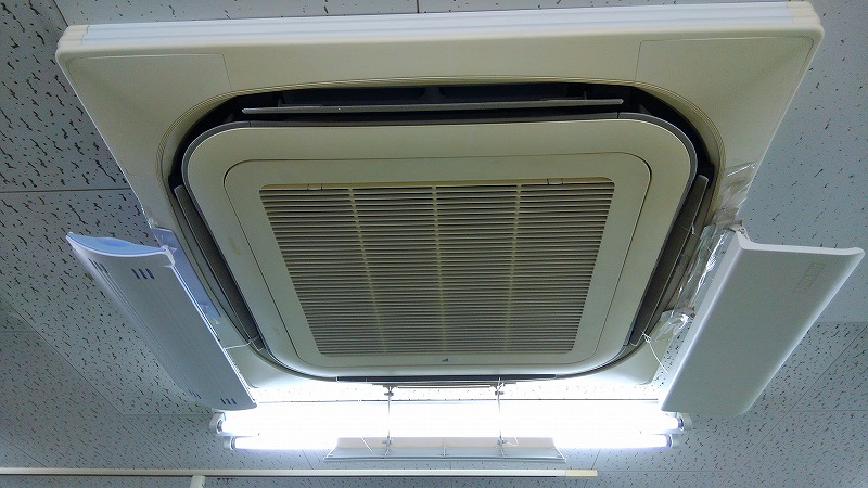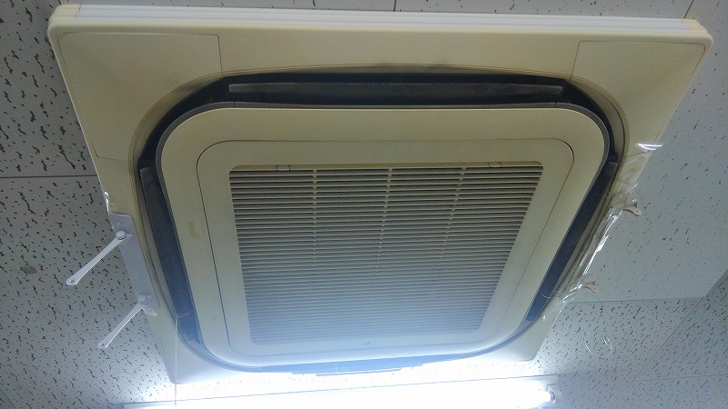 本日は八王子市で事務所の天井に埋め込まれている業務用エアコンクリーニング4方向を行ってきました。