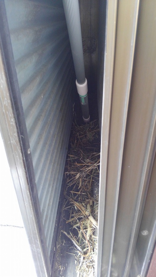 戸袋側から雨戸を取り外すタイプでして・・・鳥の巣が戸袋にあると雨戸を取り外せないじゃないか( ゚Д゚)。