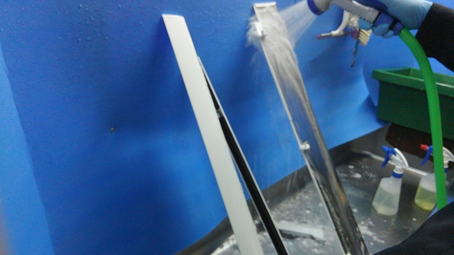 パーツの洗浄風景。