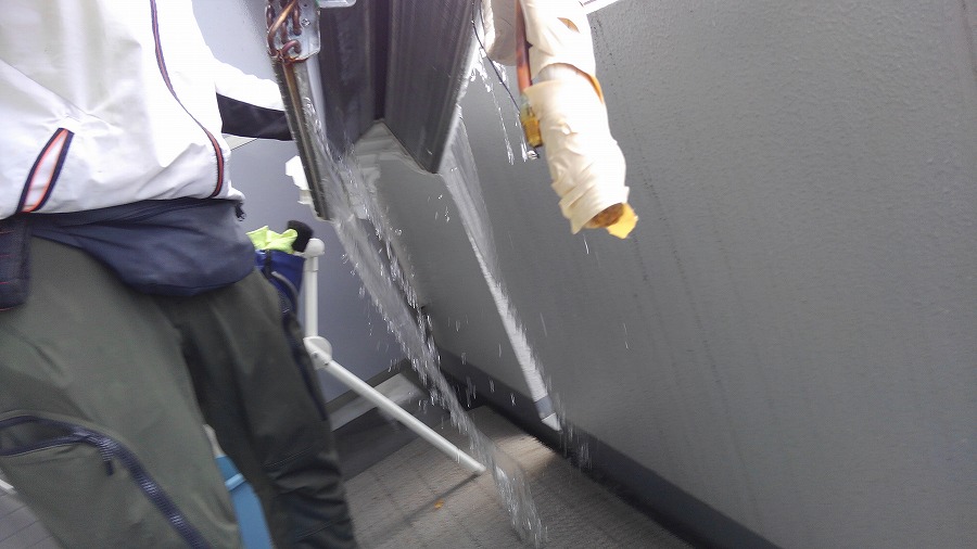 取り外しは、15分ほどでサッと取り外しベランダ室外機の上で分解させていただきました。