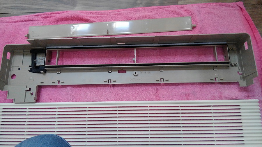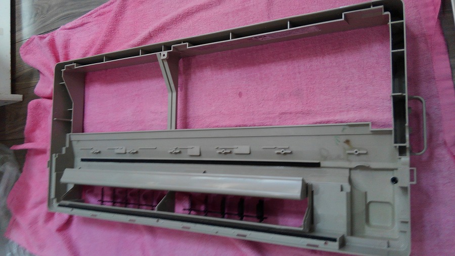 パナのエアコンには布地が多めなので、洗浄後は乾きで出来る限り吸水しながら組み付けていきます。