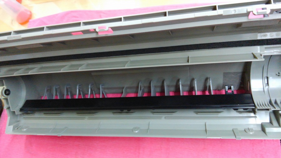 一番負荷がかかるところなので、ボンドを塗り足していき、数日間手間を惜しまず補強したルーバーをエアコンの取り付けの際に忘れました(笑)