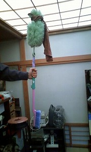 和室の障子天井のホコリを落とす現場で即席で作った道具です。
