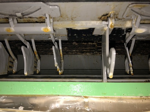 パン屋は小麦の他に油もエアコンに付着するので真っ黒ですね