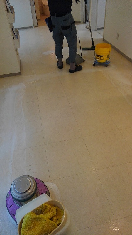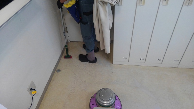 こんな感じの【ポリッシャー】という道具を使って床清掃します。